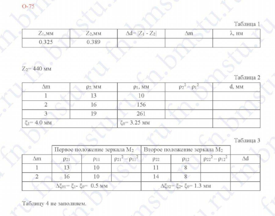 Лабораторная работа О: Интерферометр Майкельсона вариант 75