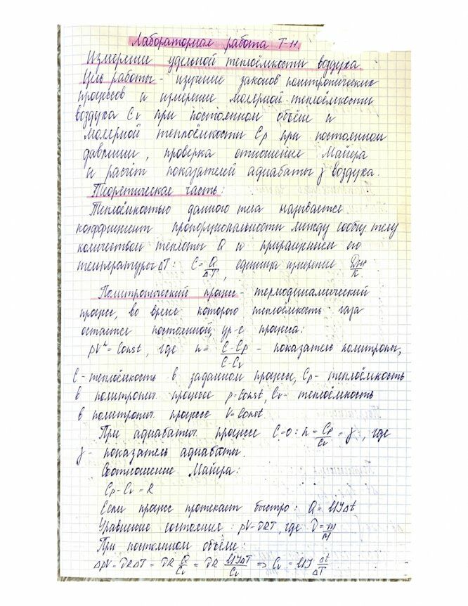 Лабораторная работа Т: Измерение удельной теплоемкости воздуха вариант 11