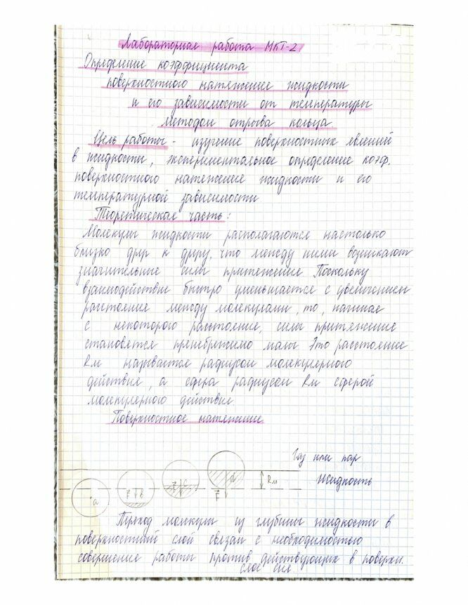 Для студентов МГТУ им. Н.Э.Баумана по предмету ФизикаОпределение коэффициента поверхностного натяжения жидкости и его зависимости от температуры методом отрыва кольцаОпределение коэффициента поверхностного натяжения жидкости и его зависимости от температуры методом отрыва кольца