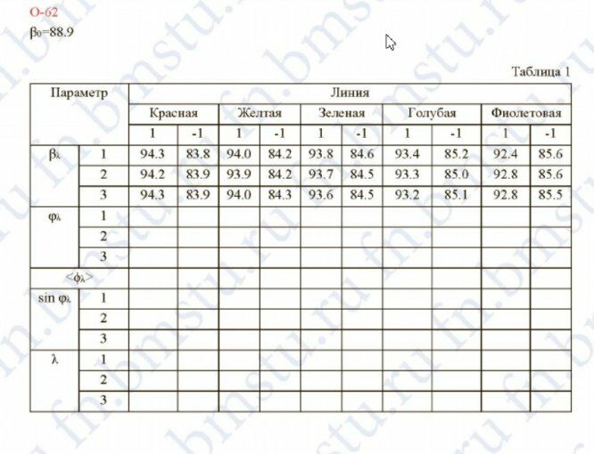 Лабораторная работа О: Отражательная дифракционная решетка вариант 62