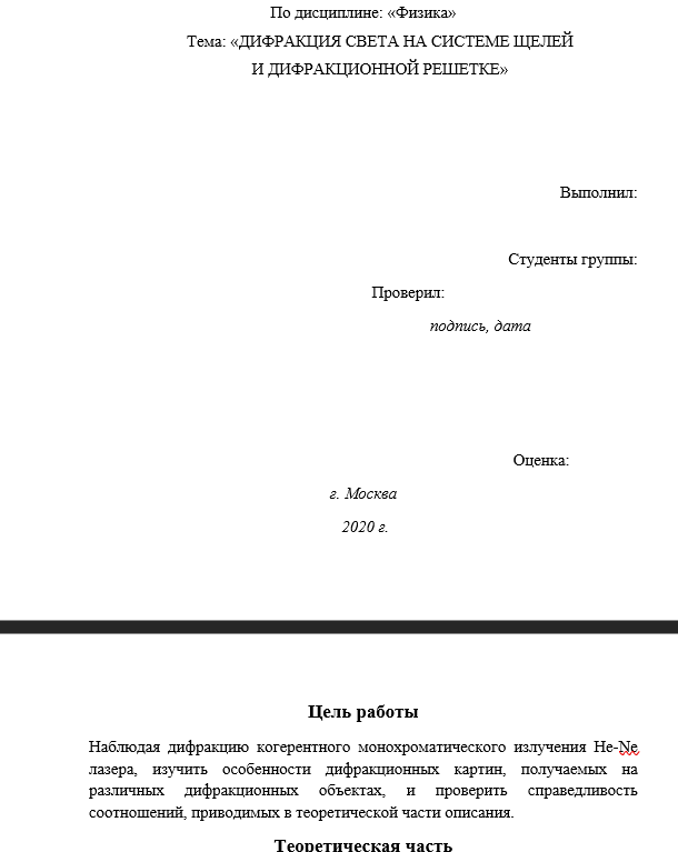 Для студентов МГТУ им. Н.Э.Баумана по предмету ФизикаДифракция света на системе щелей и дифракционной решеткеДифракция света на системе щелей и дифракционной решетке