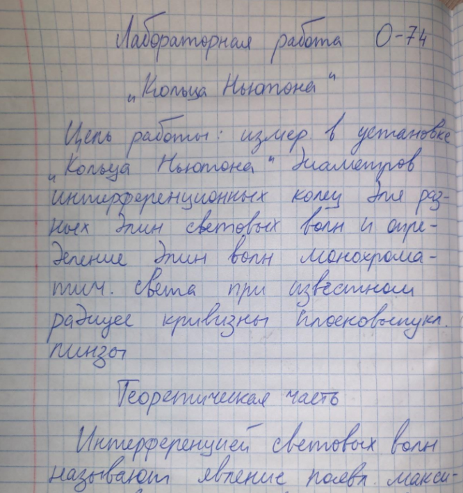Лабораторная работа О: Кольца Ньютона вариант 74