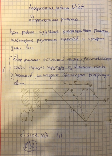 Лабораторная работа О: Дифракционная решетка вариант 27