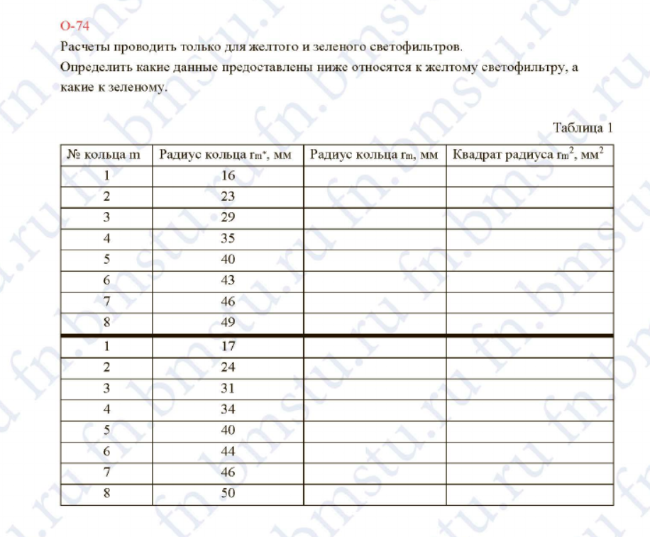 Лабораторная работа О: Кольца Ньютона вариант 74