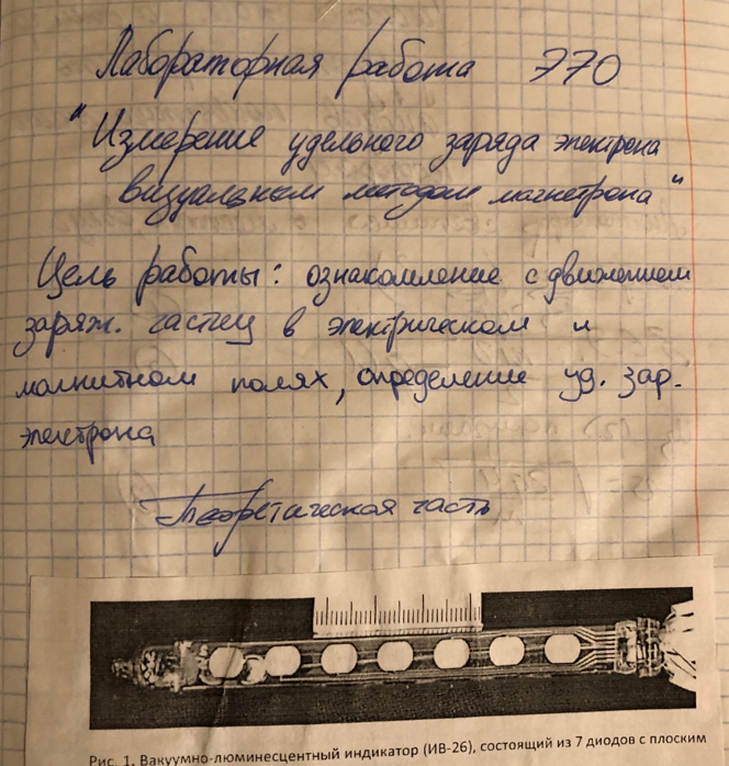 Лабораторная работа Э: Измерение удельного заряда электрона визуальным методом магнетрона вариант 70