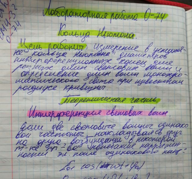 Лабораторная работа О: Кольца Ньютона вариант 74