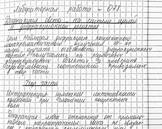 Лабораторная работа О: Дифракция света на системе щелей и дифракционной решетке вариант 78