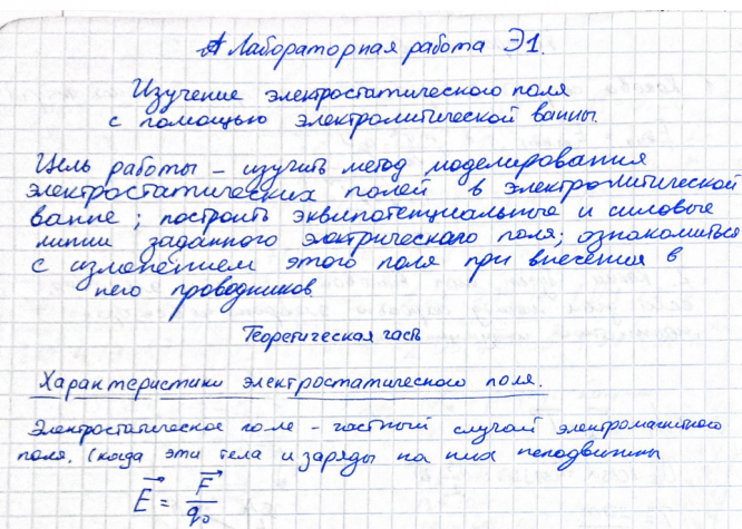Лабораторная работа Э: Изучение электростатического поля с помощью электрической ванны вариант 1