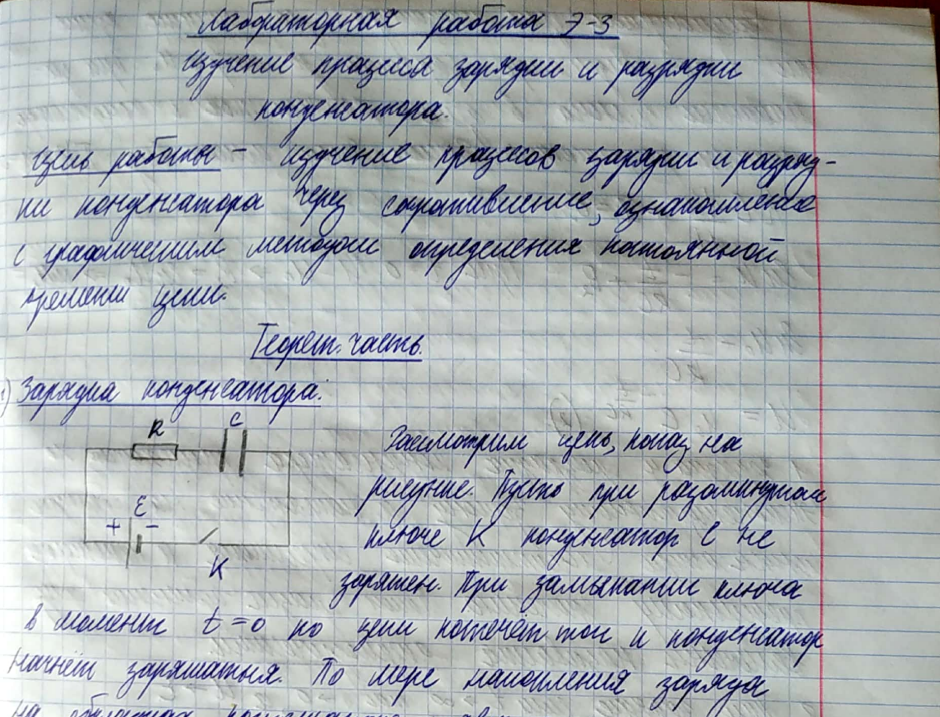 Главная » Учебные материалы » Физика » Лабораторные работы » МГТУ им. Н.Э.Баумана » 3 семестр » Номер Э » Вариант 3 » Изучение процесса зарядки и разрядки конденсатора