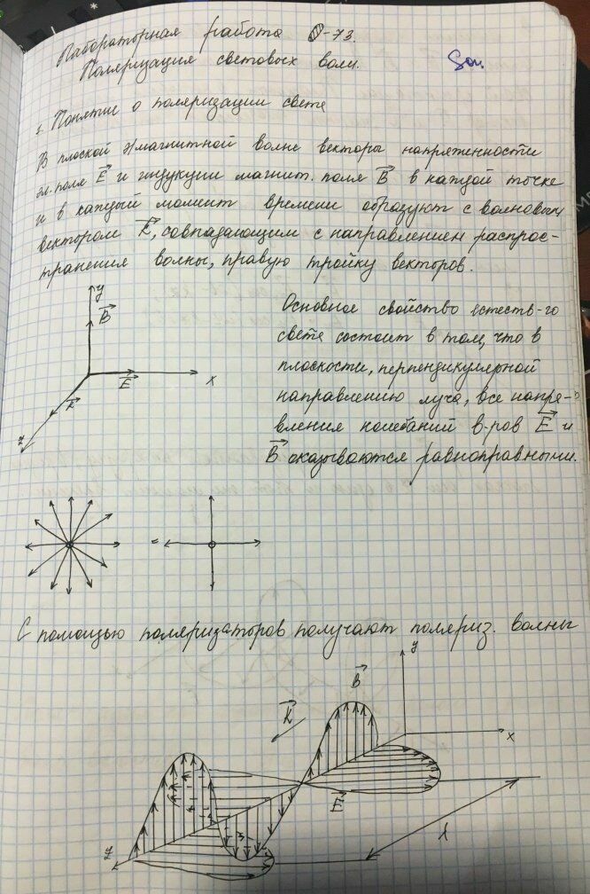 Лабораторная работа О: Поляризация световых волн вариант 73