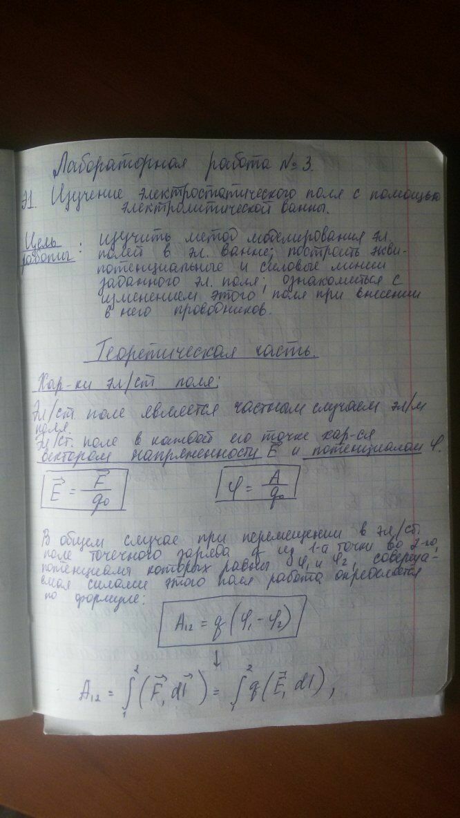 Лабораторная работа Э: Изучение электростатического поля с помощью электрической ванны вариант 1