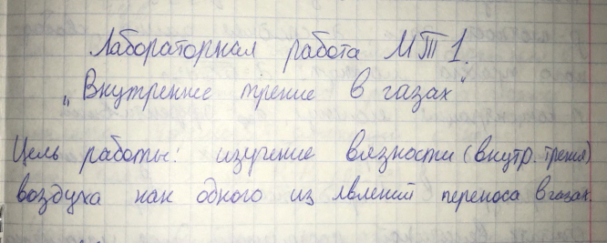 Лабораторная работа МТ: Внутреннее трение в газах вариант 1
