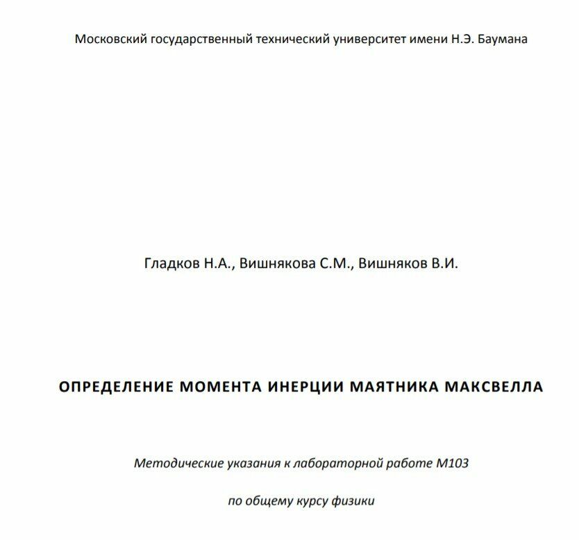 Для студентов МГТУ им. Н.Э.Баумана по предмету ФизикаОпределение момента инерции маятника максвеллаОпределение момента инерции маятника максвелла