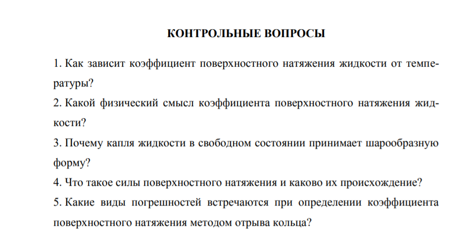 Лабораторная работа МКТ: Определение коэффициента поверхностного натяжения жидкости и его зависимости от температуры методом отрыва кольца