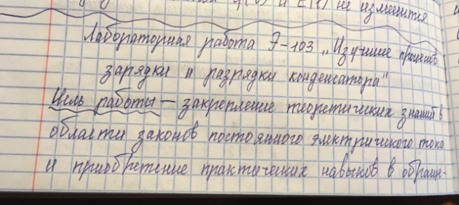 ВВЕДЕНИЕ: процессы зарядки и разрядки конденсатора относятся к классическим примерам, изучаемым в начальный период освоения законов электромагнетизма. При проведении лабораторной работы студенты знакомятся с основными физическими величинами теории электричества: электрический заряд, потенциал, напряженность, электрическое напряжение, сила и плотность тока, электрическое сопротивление и проводимость, электрическая емкость, энергия и мощность. Изучаемые процессы обладают наглядностью, что делает их доступными для понимания и усвоения.