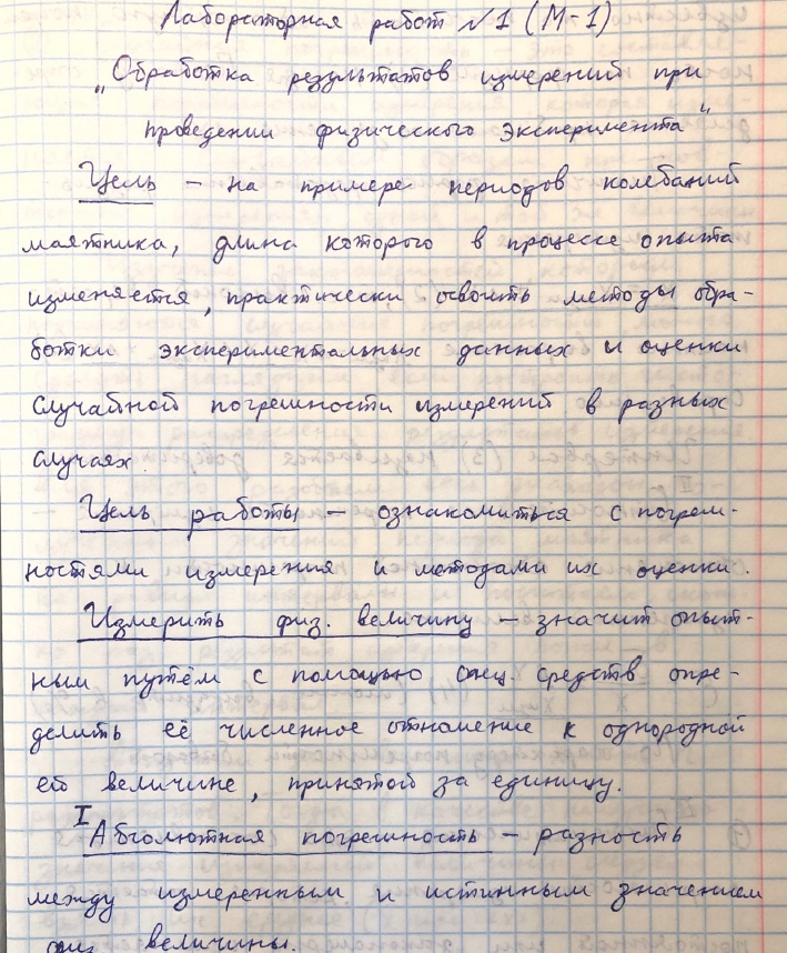 Лабораторная работа М: Обработка результатов измерений при проведении физического эксперимента вариант 1