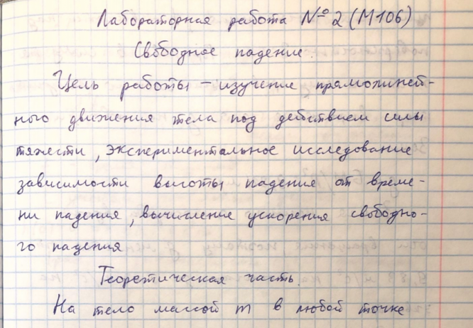 Лабораторная работа М: Свободное падение вариант 106