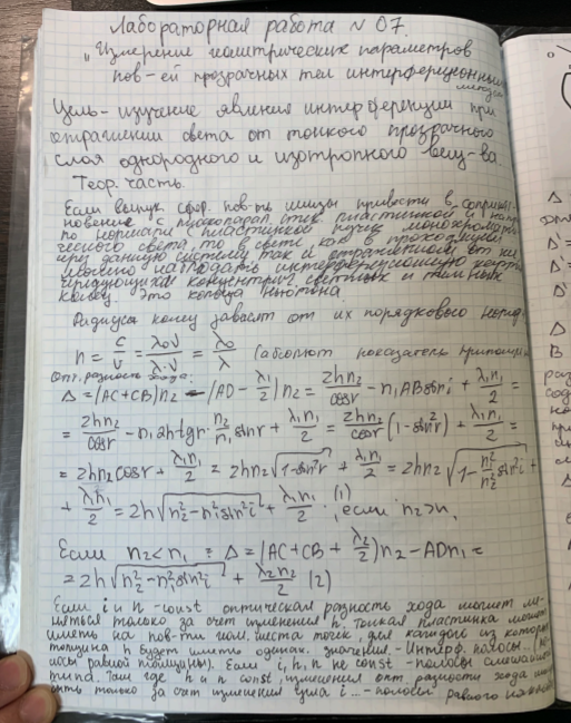 Главная » Учебные материалы » Физика » Лабораторные работы » МГТУ им. Н.Э.Баумана » 3 семестр » Номер О » Вариант 7 » Интерференция в тонких пленках. Определение геометрических параметров поверхностей прозрачных тел интерференционным методом