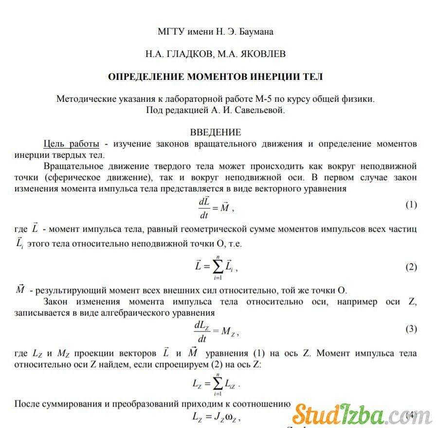 Для студентов МГТУ им. Н.Э.Баумана по предмету ФизикаОпределение моментов инерции телОпределение моментов инерции тел