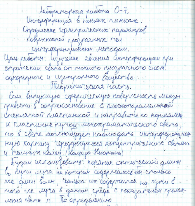 Интерференция в тонких пленках. Определение геометрических параметров поверхностей прозрачных тел интерференционным методом