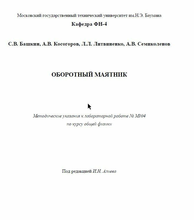 Для студентов МГТУ им. Н.Э.Баумана по предмету ФизикаОборотный маятникОборотный маятник