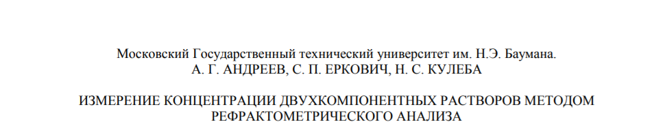 Для студентов МГТУ им. Н.Э.Баумана по предмету ФизикаИзмерение концентрации двухкомпонентных растворов методом рефрактометрического анализаИзмерение концентрации двухкомпонентных растворов методом рефрактометрического анализа