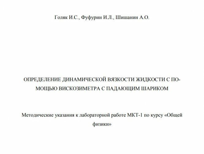 Для студентов МГТУ им. Н.Э.Баумана по предмету ФизикаОпределение динамической вязкости с помощью вискозиметра с падающим шарикомОпределение динамической вязкости с помощью вискозиметра с падающим шариком