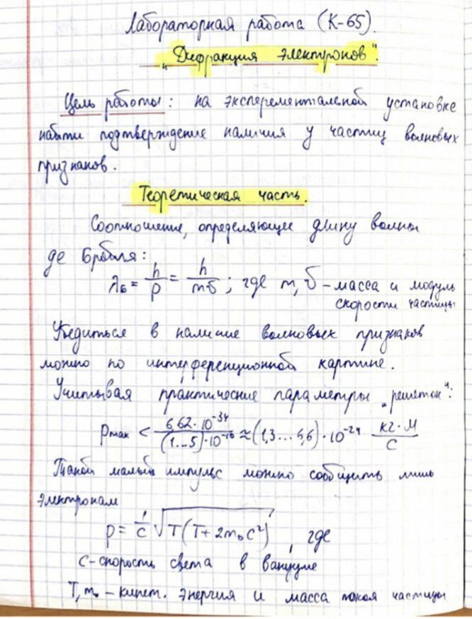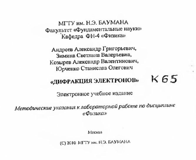 Для студентов МГТУ им. Н.Э.Баумана по предмету ФизикаДифракция электроновДифракция электронов