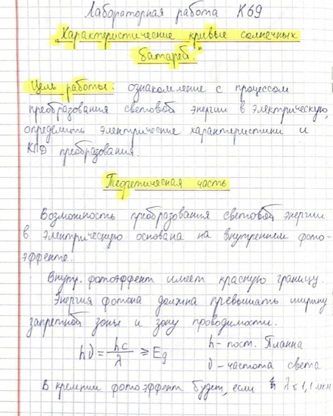 Лабораторная работа К: Характеристические кривые солнечных батарей вариант 69
