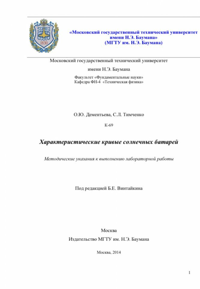 Для студентов МГТУ им. Н.Э.Баумана по предмету ФизикаХарактеристические кривые солнечных батарейХарактеристические кривые солнечных батарей