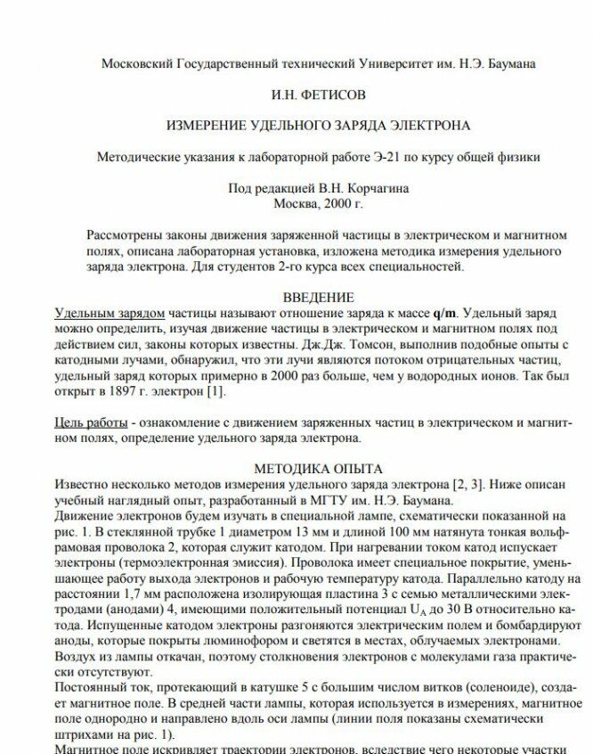 Для студентов МГТУ им. Н.Э.Баумана по предмету ФизикаИзмерение удельного заряда электронаИзмерение удельного заряда электрона