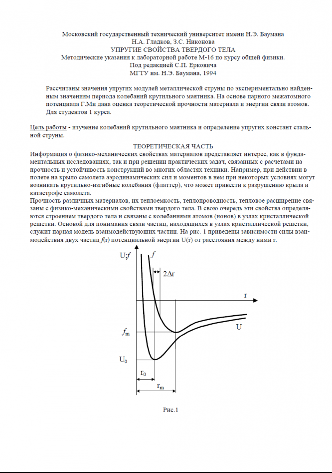 Лабораторная работа М: Упругие свойства твердого тела вариант 16
