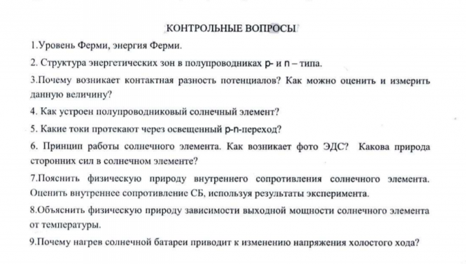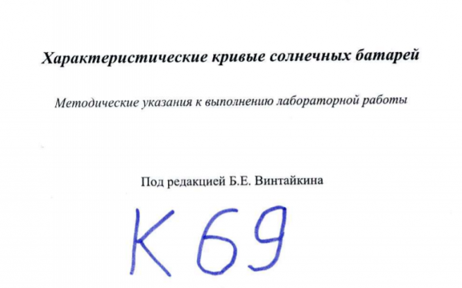 Лабораторная работа К: Характеристические кривые солнечных батарей вариант 69