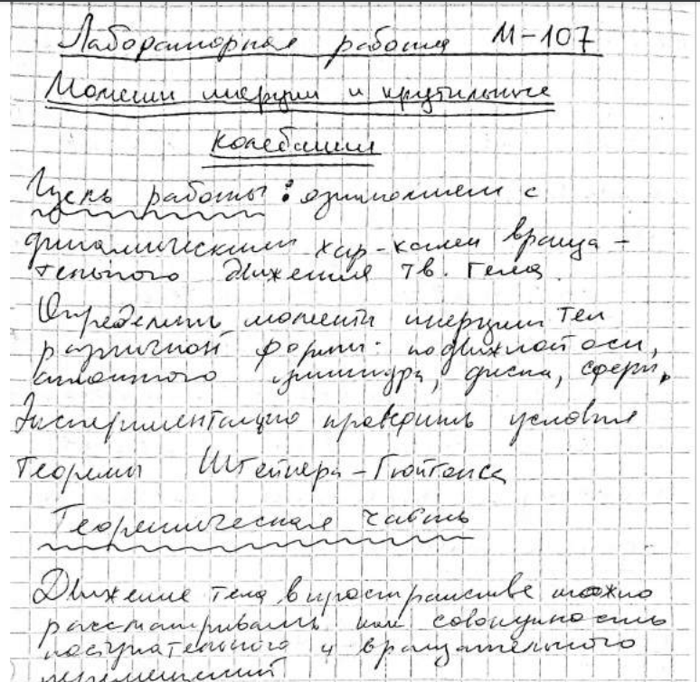 Цель работы. Ознакомление с динамическими характеристиками вращательного движения твёрдого тела, экспериментальное определение моментов инерции тел различной формы , проверка теоремы Штейнера-Гюйгенса.