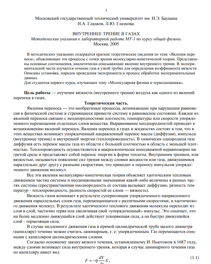 Лабораторная работа МТ-1 Внутреннее трение в газах
