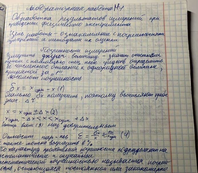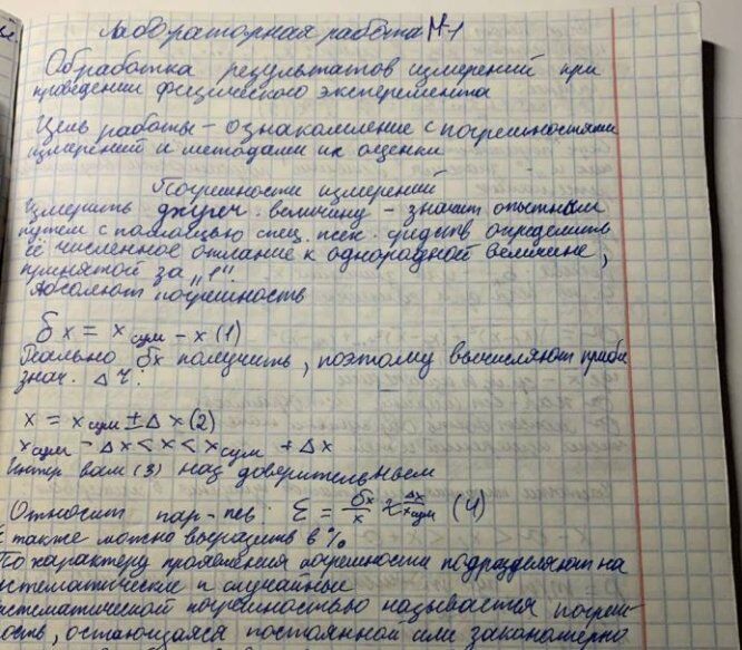 Лабораторная работа М-1 - Обработка результатов измерений при проведении физического эксперимента