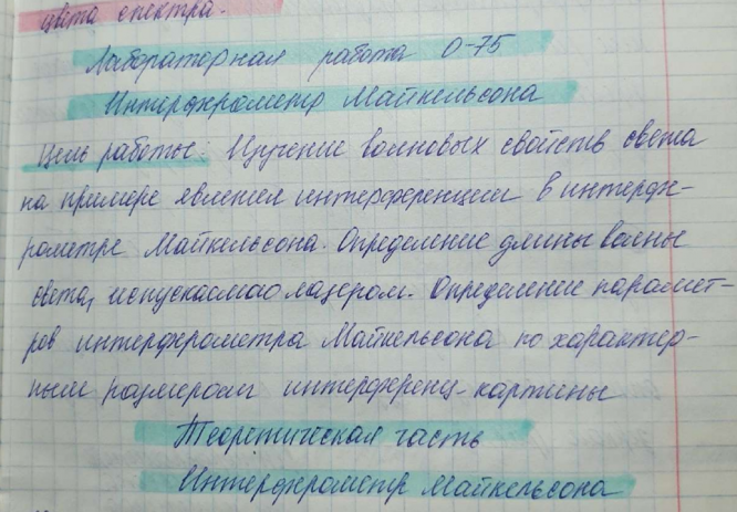 Лабораторная работа О: Интерферометр Майкельсона вариант 75