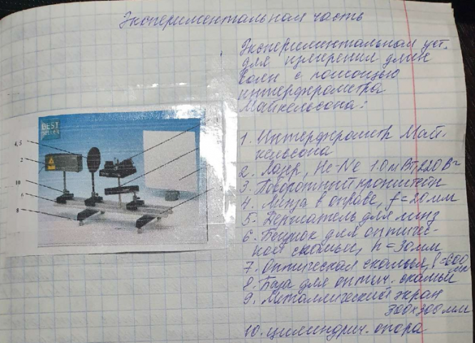 ЦЕЛЬ РАБОТЫ: Изучение волновых свойств света на примере явления интерференции в интерферометре Майкельсона. Определение длины волны света, испускаемого лазером. Определение параметров интерферометра Майкельсона по характерным размерам интерференционной картины.