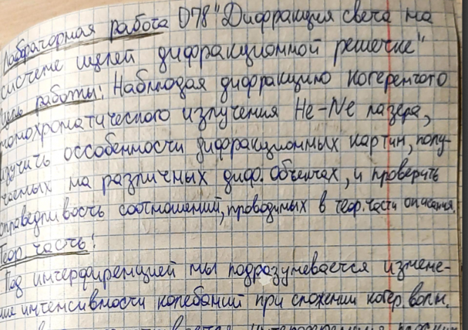 Лабораторная работа О: Дифракция света на системе щелей и дифракционной решетке вариант 78
