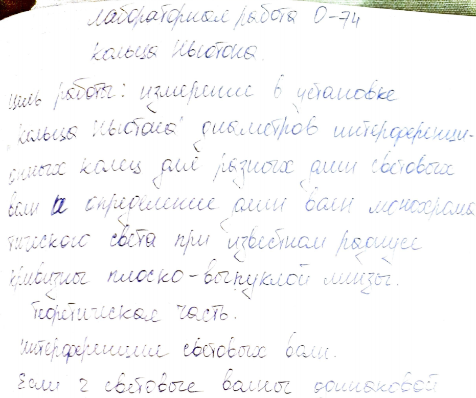 Лабораторная работа О: Кольца Ньютона вариант 74