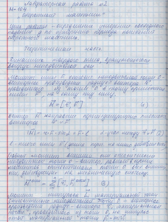 Для студентов МГТУ им. Н.Э.Баумана по предмету ФизикаОборотный маятникОборотный маятник