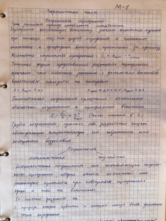 Лабораторная работа М-1 - Обработка результатов измерений при проведении физического эксперимента