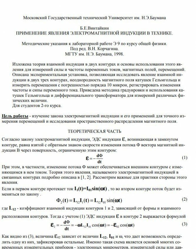 Лабораторная работа Э: Применение явления электромагнитной индукции в технике вариант 9