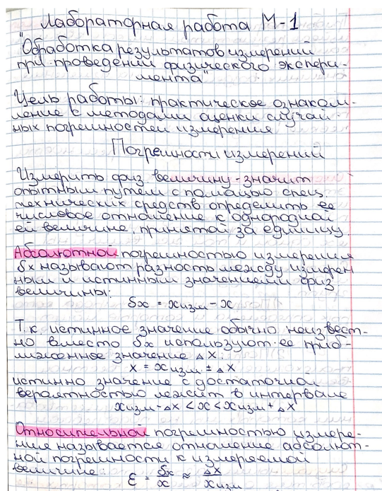 Лабораторная работа М-1 - Обработка результатов измерений при проведении физического эксперимента