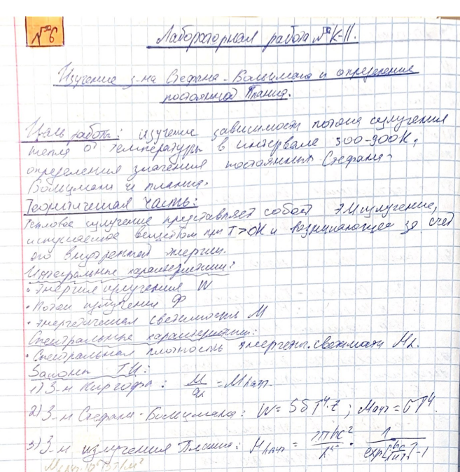 Лабораторная работа К-11: Изучение закона Стефана-Больцмана и определение постоянной Планка