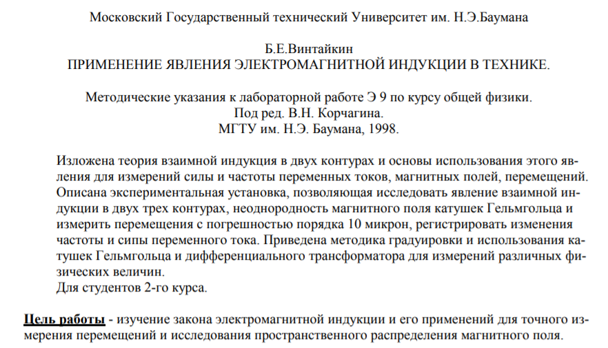 Цель работы - изучение закона электромагнитной индукции и его применения для точного измерения перемещений и исследования пространственного распределения магнитного поля