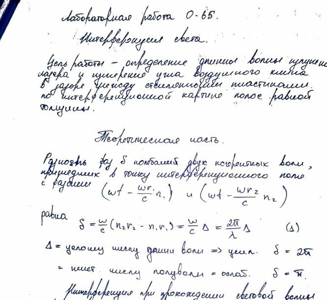 Лабораторная работа О: Интерференция света вариант 65