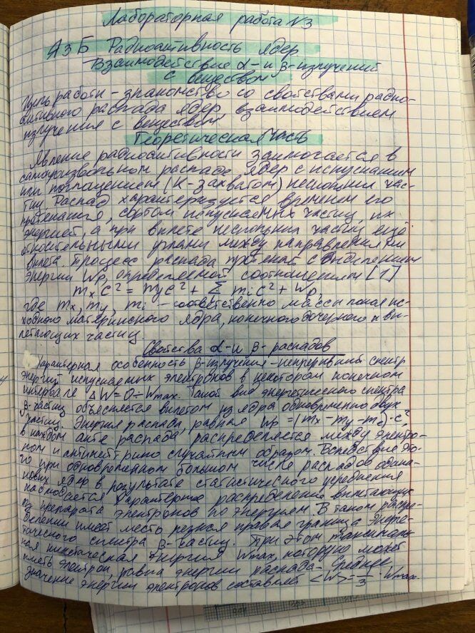 Лабораторная работа Я: Радиоактивность ядер. Взаимодействие α- и β-излучений с веществом вариант 3