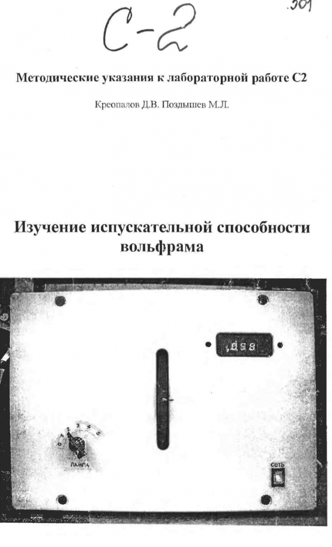 Для студентов МГТУ им. Н.Э.Баумана по предмету ФизикаИзучение испускательной способности вольфрамаИзучение испускательной способности вольфрама
