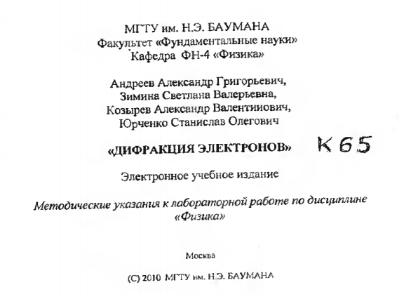 Для студентов МГТУ им. Н.Э.Баумана по предмету ФизикаДифракция электроновДифракция электронов